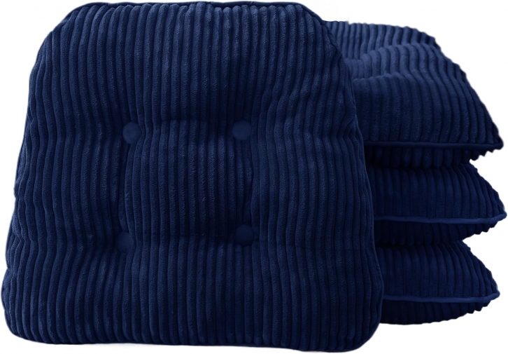 HIGOGOGO D-Shaped Home Chair Pad Cushion with Tufted Corduroy Cover, 2.5 Inch Thick Supportive Cushion, Overstuffed Chair Cushion, Set of 4, Navy