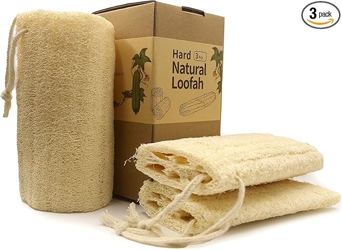 Rough Natural Loofah Sponge Exfoliating Body Scrubber for Men Daily Deepcleaning Green Glow Hard Luffa Dye-Free Biodegradable Scratch-Free(6inch,3Pack)