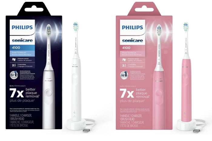 Philips Sonicare 4100 Rechargeable Electric Toothbrush, with Pressure Sensor, 2 Intensity Settings, SmarTimer and QuadPacer, 14-Day Battery Life, White, Model HX3681/23 +