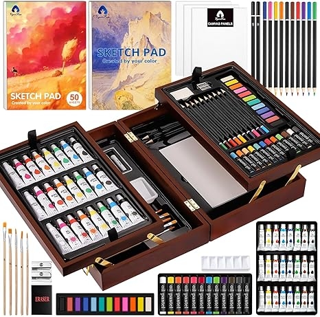 VigorFun Art Supplies, Deluxe Wooden Art Set Crafts Drawing Painting Kit with 2 Sketch Pads, Oil Pastels, Acrylic, Watercolor Paints, Creative Gifts Box for Adults Artist Kids Teens Girls, AC
