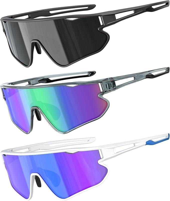 QALLY 3PACK Kids Sunglasses Youth Baseball Sunglasses for Boys Girls Age 4-14, Softball Cycling UV400 Protection Sports