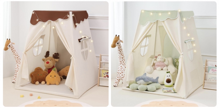 Frustum Design Kids Play Tent with Star Lights, Dual-Door Toddler Tent Indoor for Ages 4-8, Portable Toddler Playhouse Gift for Girls & Boys, AC
