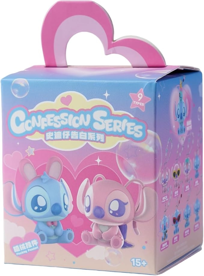 MINISO Disney Stitch Confession Flocked Surprise Box Pendant Mystery Blind Box Cute Collectible Keychain Charm Decorations for Key Backpack Birthday Gifts, Single Box