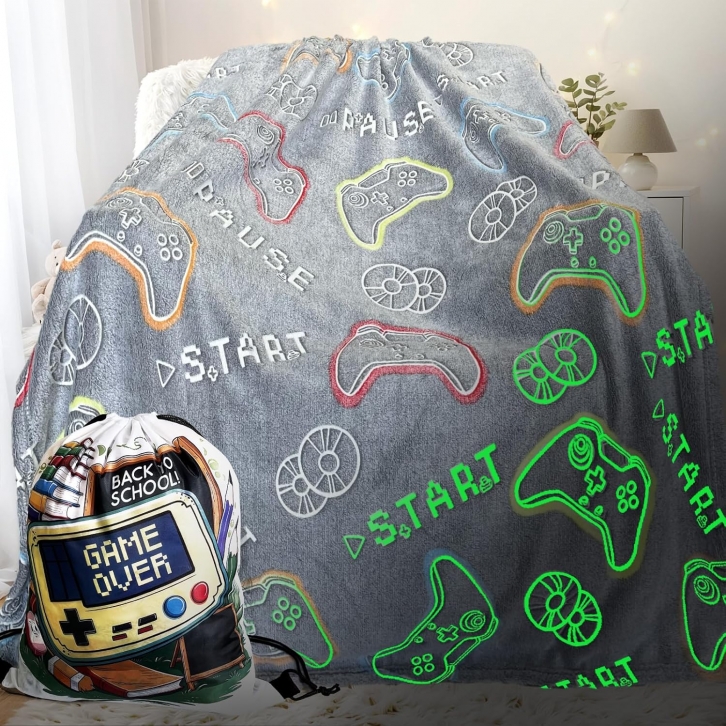 Glow in The Dark Gaming Blanket for Boys/Girls/Toddler/Baby, Cute Funny Kids Throw Blanket for Birthday/Toys, Gamer Gifts for Teen Boy, Gamer Room Decor 40"x 60"