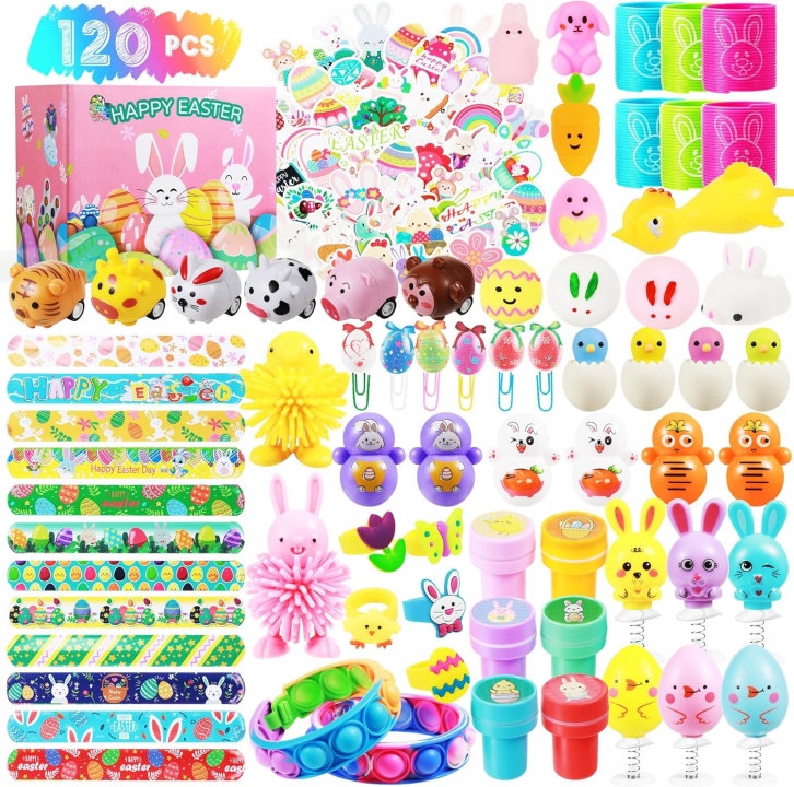 120 Pcs Easter Egg Fillers, Easter Basket Stuffers for Kids Boys Girls, Party Favor Goodie Bag Toys, Easter Gifts for Kids Students,Classroom Reward Toys
