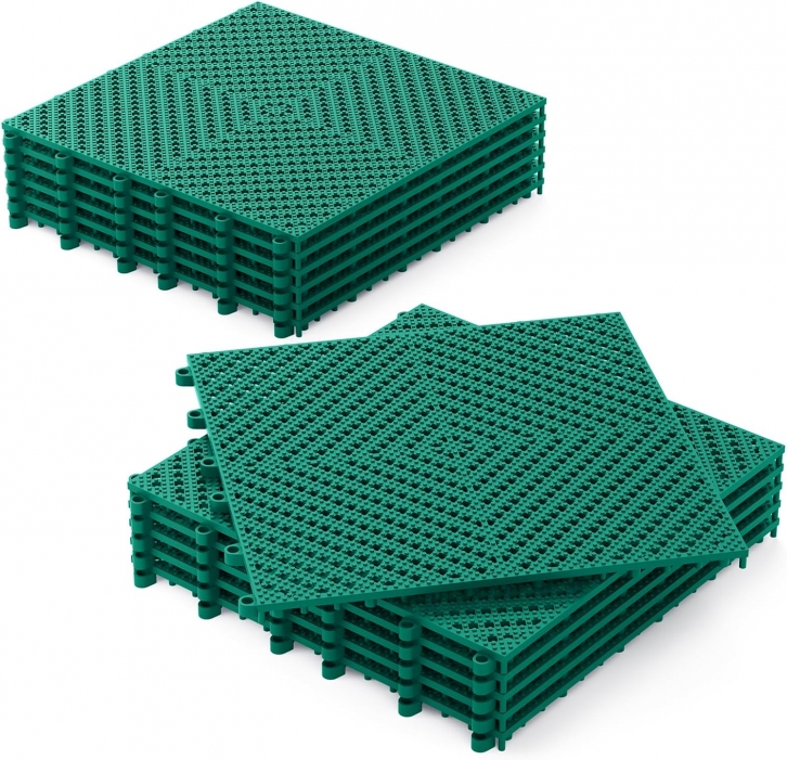 12-Pcs Interlocking Tile, Indoor/Outdoor Drainage Interlocking Floor Tiles 11.8" x 11.8", Anti-Slip Waterproof Soft PVC Splicing Flooring Tile for Garage Patio Pool Bathroom, Green