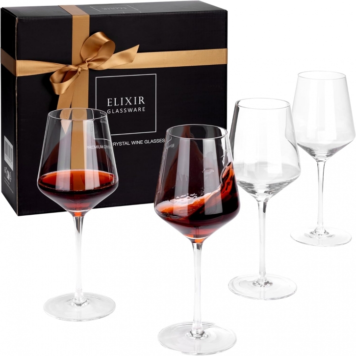 Elixir Red Wine Glasses Crystal Set of 4 - Red Wine Glass Set - Made from Crystal - Luxury Hand Blown Glass - Fancy Modern Style Cups - Sommelier Style for Luxurious Drinking