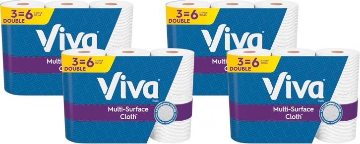 Viva Multi-Surface Cloth Paper Towels, 3 Double Rolls, 110 Sheets Per Roll (Pack of 4)