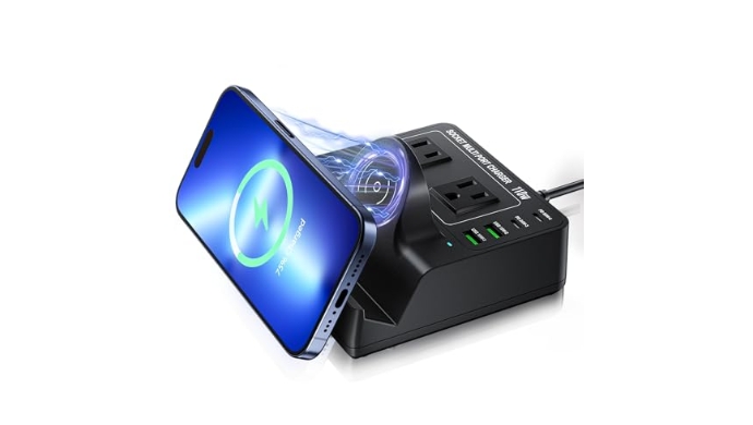 USB Charging Station for Multiple Devices Apple, TOPOINT 7 in 1 Power Strip with Wireless Charger for iPhone, 65W Fast Charging USB C Charger Block Phone for Samsung Android MacBook iPad Tablet +