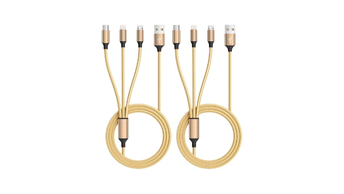 USB Multi Charging Cable for All Devices, Nylon 3 in 1 Multiple Charger Cable Charger with Multiple Connectors, USB A to USB C/Micro/Lightning USB Cable for iPhone 17-8 Pro Max/Android/iPad, 2Pack 4FT +