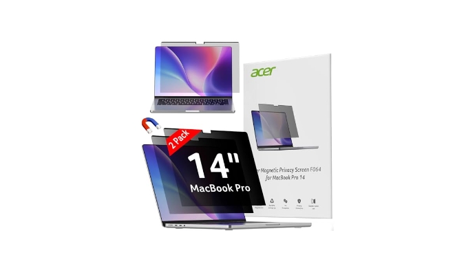acer [2 Pack] Laptop Privacy Screen for MacBook Pro 14 Inch (2021-2024 M1, M2, M3, M4), Eye Protection Anti Spy/Glare Blue Light Computer Monitor Privacy Filter, Dual-sided Magnetic & Removable +