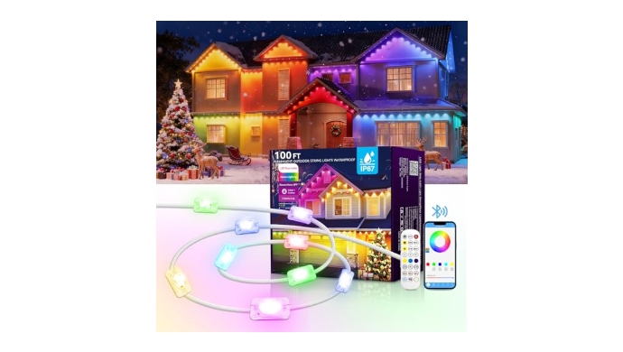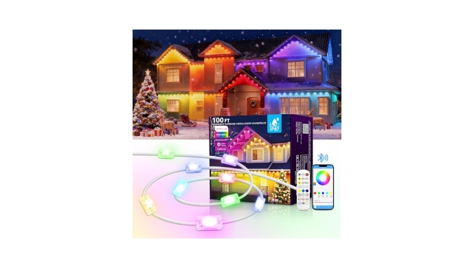 AHAWILL 100FT Christmas Permanent Outdoor Lights,RGB+IC Eaves Lights with App & Remote Control,DIY Multi-Color Scene Modes,IP67 Waterproof,Outdoor Strings for House,Holiday Decorations for Christmas +