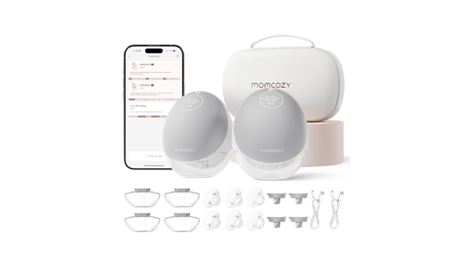 Momcozy Breast Pump Hands Free Upgraded Mobile Flow | M9, App Discreet Control with Personalized Multi-Modes & 15 Levels, Wearable Breast Pump 24mm, 2 Pack Gray +