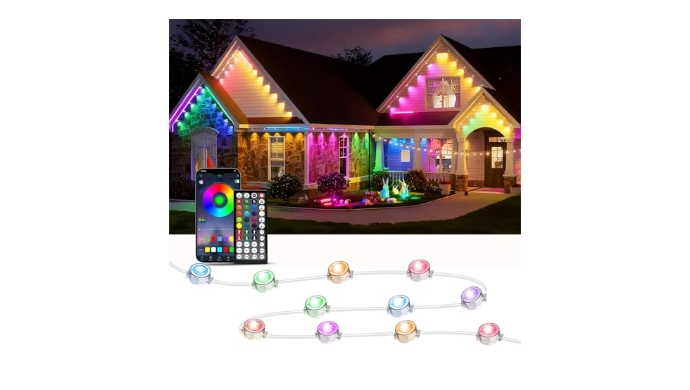 Galental 100FT RGB+IC LED Permanent Outdoor Lights,Eave Lights with Smart APP & Remote Control, 72 Scene Modes, Waterproof IP65 for Holiday Christmas Decorations +