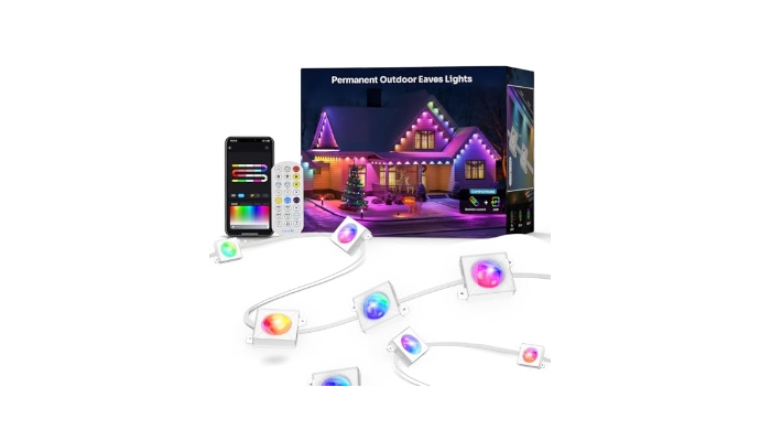 Galental 100FT RGB+IC LED Permanent Outdoor Lights: Eave Lights with Smart APP & Remote Control, 72 Scene Modes, Waterproof IP65 for Holiday Christmas Decorations(Extension Cord Not Included) +