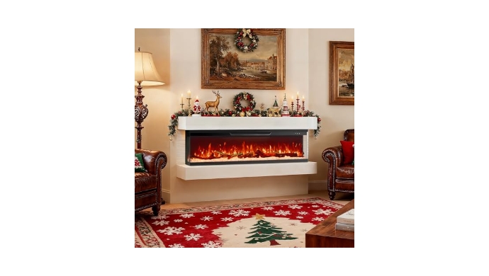 Silonn 3-Sided Smart 50" Electric Fireplace, Alexa & App Control Fireplace with 15 Flame Colors, Electric Fireplace Inserts Logs, 5110 BTU Heat Output, Realistic Flame and Sound +