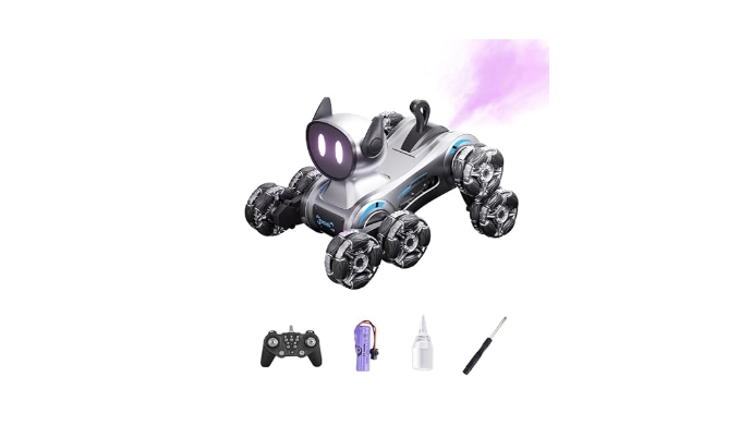 XOS Remote Control Robot Dog Stunt RC Car Truck Electronic Drift Tractor Crawler Vehicle with 8 WD, Music, LED Lights, Spray, Multiple Postures, for 6-12+ Kids Boys Girls Birthday Gifts +