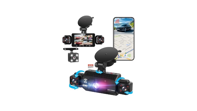 4 Channel Dash Cam 360° View 5G WiFi & APP Control, GEMEK 2K Front and Rear Inside, Left Right Dash Camera for Cars Free 64GB TF Card, G-Sensor, Night Vision, 24H Parking Mode +