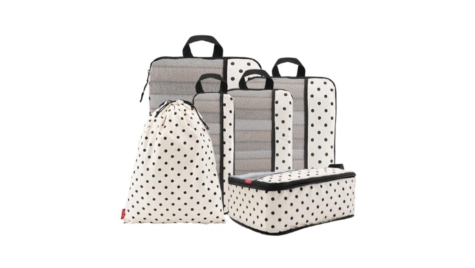 U+U 6 Set Compression Packing Cubes - Ultralight Travel Organizers with Laundry Bag, Space-Saving Suitcase Organizer, Expandable Packing Cubes for Travel, Business Trip and Family Vacation (Polka Dot) +