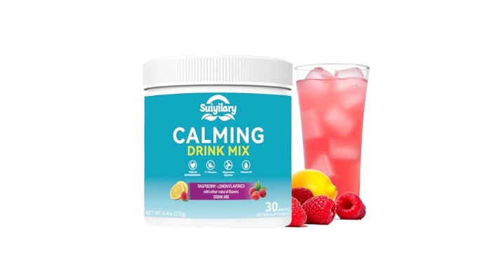 Calm Magnesium Powder, Cortisol Supplements Drink Mix No Sugar for L-Theanine, KSM66 Ashwagandha, Magnesium Glycinate, Vitamin D3, Relaxation, Focus, Raspberry Lemonad, 30 Servings +