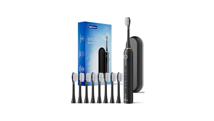 Tgbhcom Black Electric Toothbrushes, with 8 Brush Heads, 1 Travel Toothbrush Case, for Adults and Kid Electric Toothbrush, Long 180-Day Battery Life, 6 Modes, IPX7 Waterproof, Smart 2-Minute Timer. +