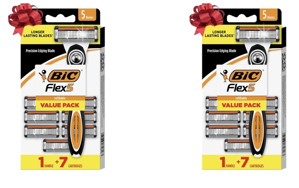 Two (2) BIC Flex 5 Refillable Men's 5 Blade Razors, Long-Lasting and Comfortable Shave, 1 Handle and 7 Cartridges-Pack w/Subscription & Coupon +