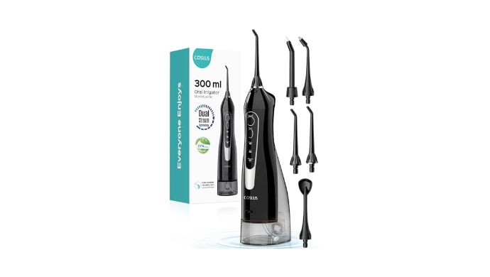 COSLUS Water Dental Flosser Teeth Pick: Portable Cordless Oral Irrigator 300ML Rechargeable Travel Irrigation Cleaner IPX7 Waterproof Electric Flossing Machine for Teeth Cleaning C20(F5020E) +