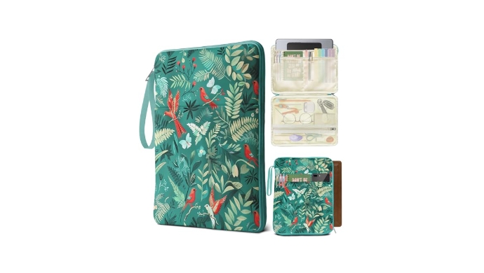 Hummingbird Book Sleeve Protector - Vintage Carrying Case for Paperback Hardcover, Waterproof Leather Cover Bag With Zipper, Tropical Palm Leaves Portable Pouch for Lovers Gifts +