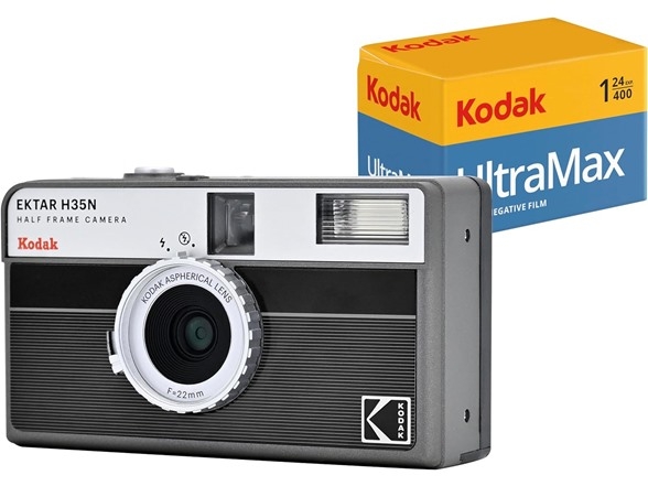 Kodak Ektar H35N Half-Frame Film Camera 35mm, Reusable, Focus-Free, Bulb Function, Built-in Star Filter, Coated Improved Lens, with Kodak Ultramax 400/24EXP 35mm Roll Film