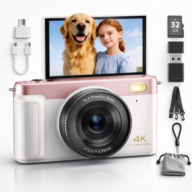 4K 75MP Vlogging Camera with Flip Screen AC +