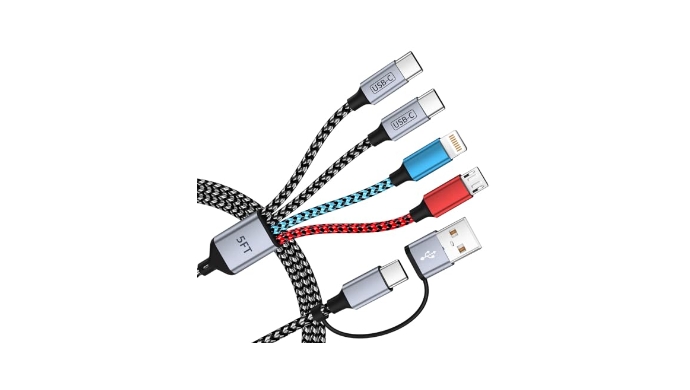 4 in 2 Multi Charging Cable, [Dual Type-C Port][5FT] USB A/C Charging Cables for Multiple Devices with IP/Micro/iPhone 17 Port, Universal USB C Cable Phone Charger Cord for iPhone 16-12, Tablet Pad +