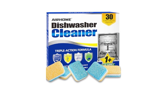 Airhome Dishwasher Cleaner Tablets, 30-Count Deodorizing Pods (15-Month Supply) - Heavy-Duty Descaler Removes Limescale, Minerals, Grease & Odors, Lemon Scent +