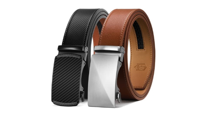Zitahli Ratchet Belt for Men - 2 Packs Leather Mens belt For Gift Men Dress and Casual,Trim to Fit Size 34"-48" +
