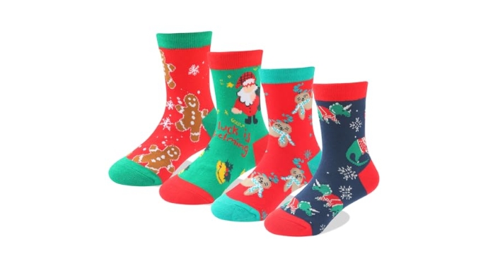 KAKAVENTE Christmas Socks for Kids,4 Pairs Funny Crazy Holiday Socks,Fun Cute Christmas Gifts for Boys Girls +