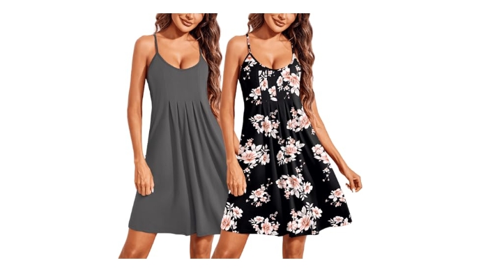 Ekouaer 2 Pack Nightgowns for Women Sleeveless Sleepwear Racerback Tank Sleepshirt Pleated Chemise Nighty Floral M +