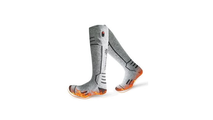 FREEHILL Merino Wool Heated Socks for Men Women, 5000mAh One-Click Control Rechargeable Cold Weather Heated Ski Socks (US, Alpha, Large, Regular, Regular, Gray) +