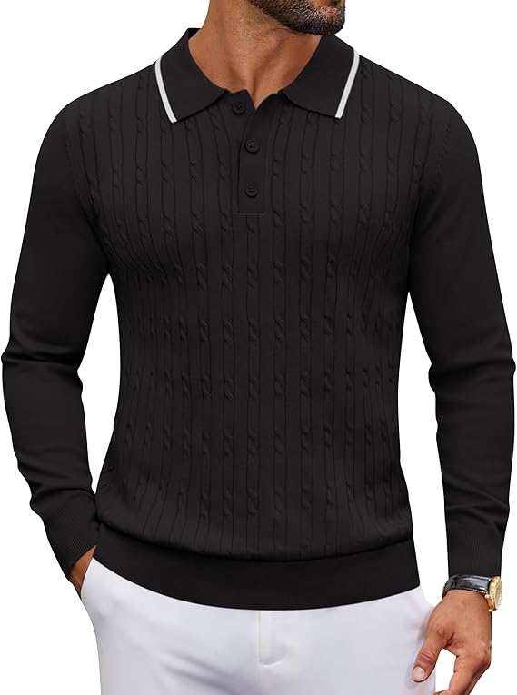 COOFANDY Men's Polo Sweater Casual Long Sleeve Knit Polos Button Down Collared Golf Pullover Sweaters