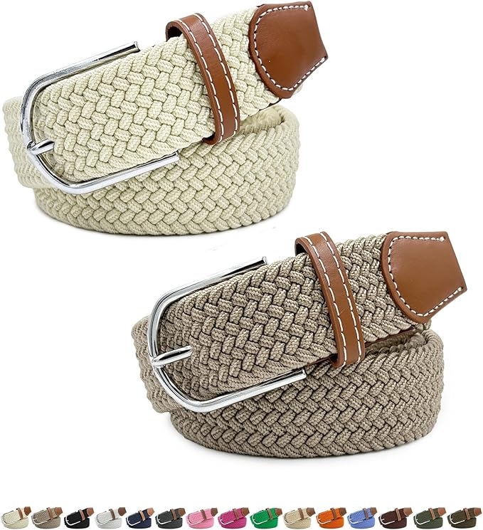 Two (2) Pack No Holes Belts for Women Men Boy Girl, Jeans Pants Dress Elastic Stretchy Golf Braided Belt, AC