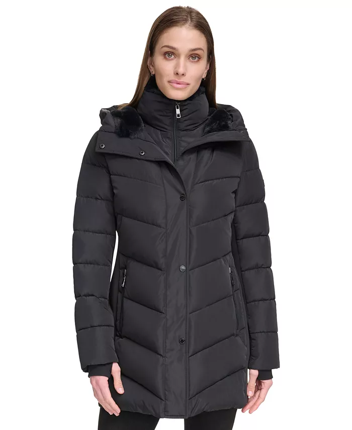 Calvin Klein Women's Hooded Puffer Coat (Black or Navy) +