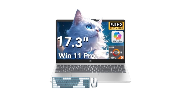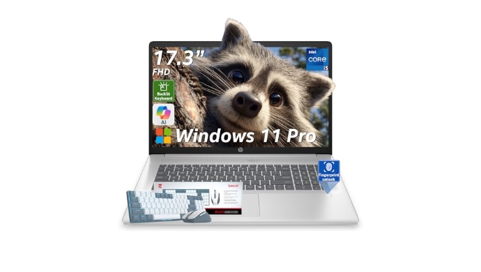 HP 17 inch laptops, AMD Ryzen 5 7430U(Beats i7-1165G7), 32GB RAM 1TB NVMe SSD Windows 11 Pro, 17.3" FHD IPS, Copilot AI, Numeric Keyboard, Type-c, Patented KB Kit +