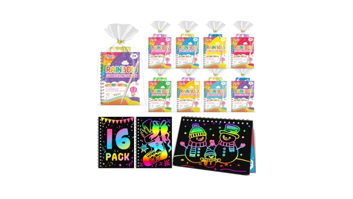 FEREDO KIDS Party Favors for Kids: 16 Pack Rainbow Scratch Art Notebook Back to School Students Classroom Gifts Bulk for Girls Boys Goodie Bags Stuffers, Return Gifts for Birthday Party Favors Bulk +