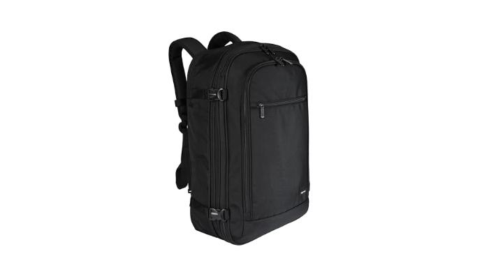 Amazon Basics Travel Backpack, Carry On Backpack, With Laptop Compartment, 40L Capacity, Expandable for 10% Extra Space, Backpack & Shoulder Bag Dual Use, 15.8"W x 21.5"H x 8.3"D, Black +