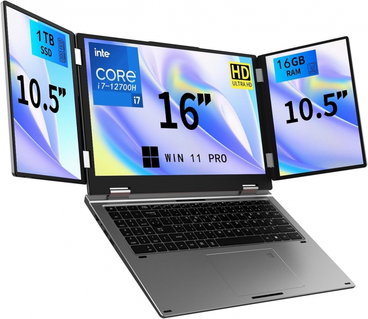 Triple Screen Laptop,16” Main + Dual 10.5” Monitors, Core i7-12700H, 16GB RAM,1TB SSD AC +