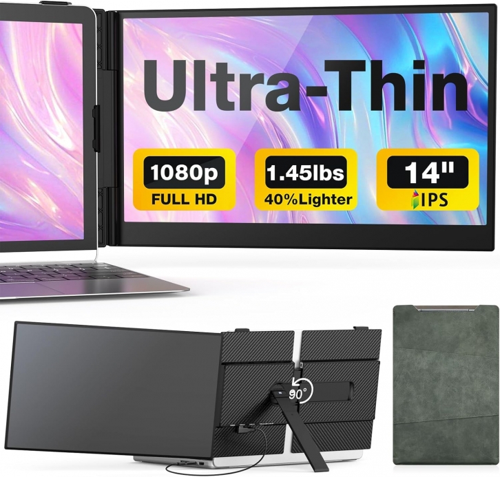 Laptop Screen Extender, 14-Inch Ultra-Thin & Lightweight, 1080P FHD Portable Travel Monitor AC +