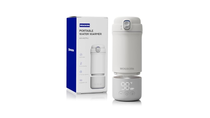WONDBORN Portable Bottle Warmer for Travel - Instant Heating, Dishwasher Safe, 1°F Precise Temp Control, 30W Fast Charge, Long Battery Life, 17 Oz Capacity, Baby Milk Warmer for Breastmilk & Formula +
