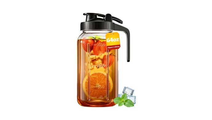 64 oz Mason Jar Pour Spout, 2 Quart Glass Water Pitcher with Lid, Airtight Seal for Great for Iced Tea,Juice,Milk,Coffee,Sun Lemonade, Set of 1(Black) +