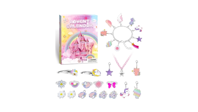 Advent Calendar 2025 Unicorn Christmas Countdown Calendar for Kids Girls 24 Days with DIY Charm Bracelet Necklace Ear Clips Rings Surprise Making Kit Creative Gifts for Daughter Granddaughter Niece +