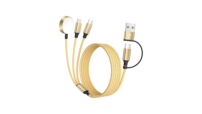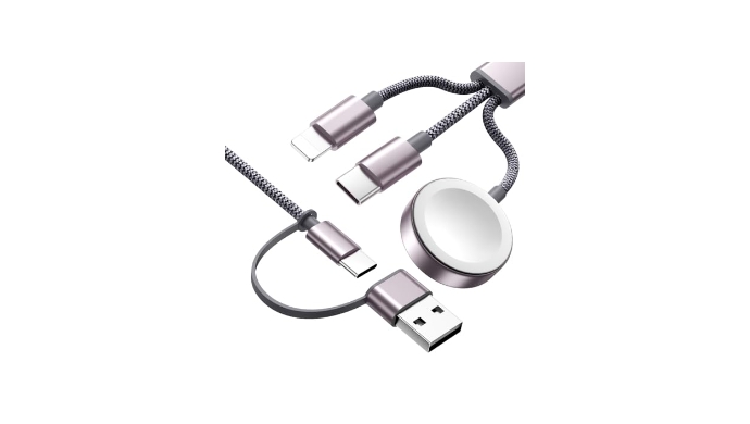 Travel Essentials Portable Charger 5FT, 3in2 Multi Charging Cable with Apple Watch Charger, USB C Cable, Lightning Carplay, Travel Chargers for Multiple Devices—All iWatch, iPhone16-12, iPad, Galaxy +
