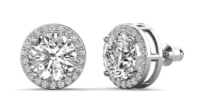 Cate & Chloe Ariel 18k White Gold Plated Silver Halo Stud Earrings with Simulated Diamonds for Women +