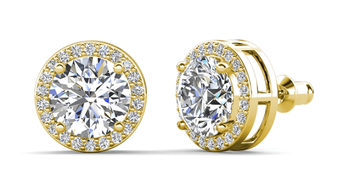 Cate & Chloe Ariel 18k Yellow Gold Plated Halo Stud Earrings with Simulated Diamonds, Gift for Women +